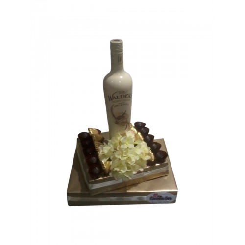 This fantastic arrangement will look gorgeous at any Simcha. Contains a large vanilla Walders liquer and an assortment of deliciously filled truffles. It will definitely make someones day