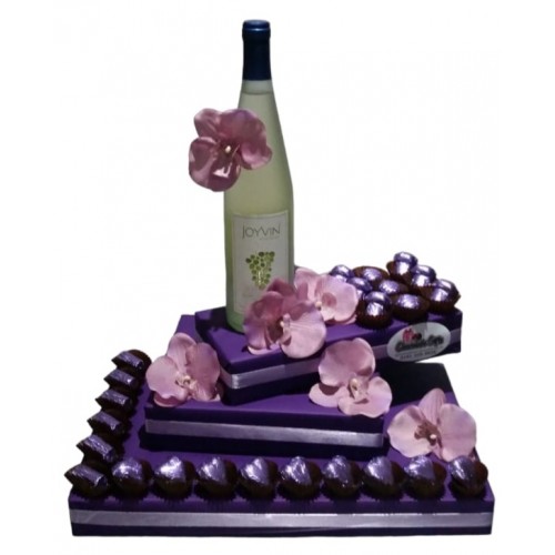 This small arrangement is perfect to say thank you or for any other special occasion. It contains a bottle of wine and a selection of delicious Belgian chocolate truffles. It comes beautifully wrapped up in cellophane with a big bow in the centre. Order yours now!