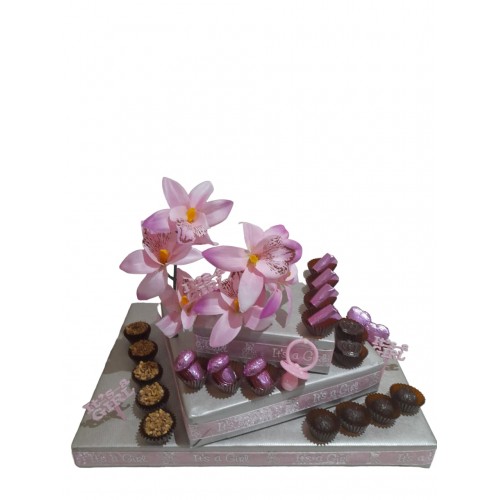 This gorgeous chocolate arrangement will delight the new princesses family. Theres something for eve..