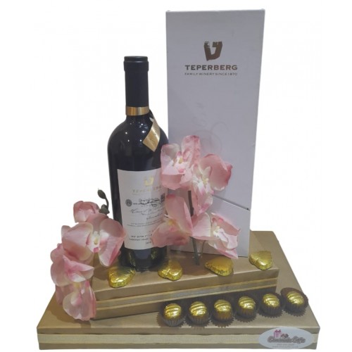 This fantastic arrangement will look gorgeous at any Simcha. Contains a large 750ml bottle of Teperberg Legacy and an assortment of deliciously filled truffles. This is sure to make someones day!