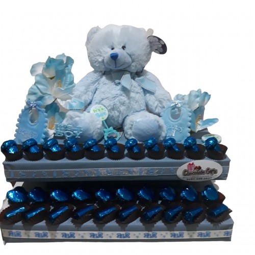 This charming arrangement makes the perfect gift. Layers of delicately smooth chocolates for everyone to enjoy! A wonderfully sweet arrangement for a wonderfully sweet occasion. Comes with a teddy - Great value for money! Order yours NOW!