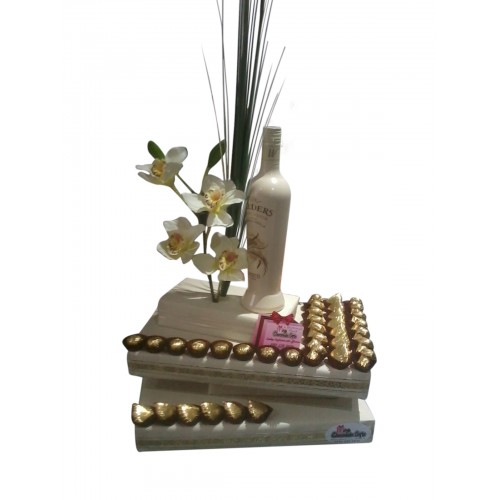 This stylish arrangements comes beautifully wrapped up and contains a whiskey with mouthwatering cho..