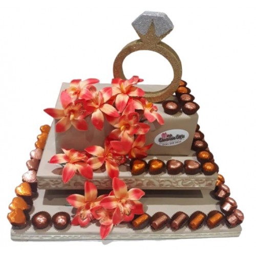 This gorgeous orange and cream chocolate arrangement is sure to blow anyone away! Enjoy a selection of fine Belgian chocolates together with a glass of wine. Perfect for any Simcha, Shabbos Sheva Brochos, Sholom Zocher, Aufruf, Bar Mitzva, Engagement etc