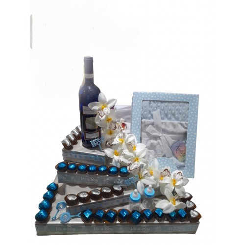 There is no happier occasion than the arrival of a new baby. And now, with this exquisite arrangement you can enhance that happiness just a little bit more. A gorgeous baby blanket and a bottle of wine with luxury chocolates adds that extra bit of love
