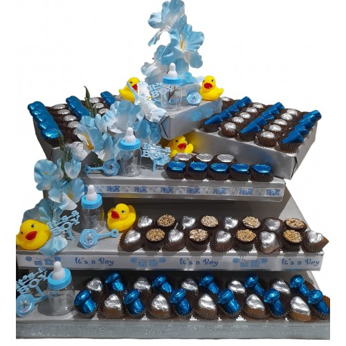 There is no happier occasion than the arrival of a new baby. And now, with this exquisite arrangement you can enhance that happiness just a little bit more. With luxury chocolates adds that extra bit of love