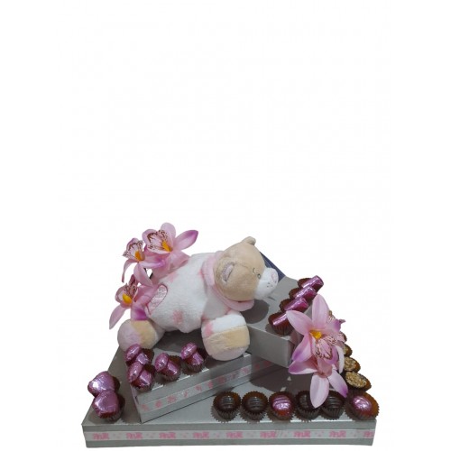 Indulge any new mother with the delightful and magnificent presentation. A selection of mouth watering chocolates will bring joy together with a soft plush teddy. Please call before ordering to make sure we have all the baby items in stock. Also option for baby boy. Call us on 0161 239 3939