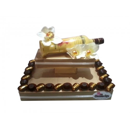 This Arrangement is delightfully displayed with a variety of chocolates and truffles and complemented by a refreshing bottle of Advocaat 700ml. Attractively decorated with satin ribbons this makes a charming gift for any colleague, friend or family member.