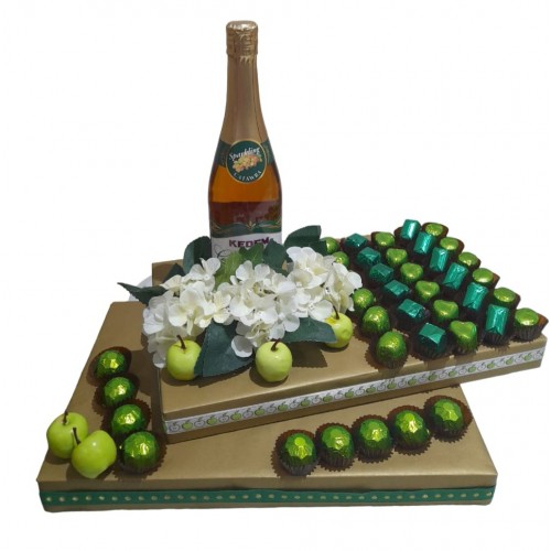 This beautiful green and lime chocolate arrangement will definitely impress anyone. A Sparkling Grape Juice stands proudly in the middle.